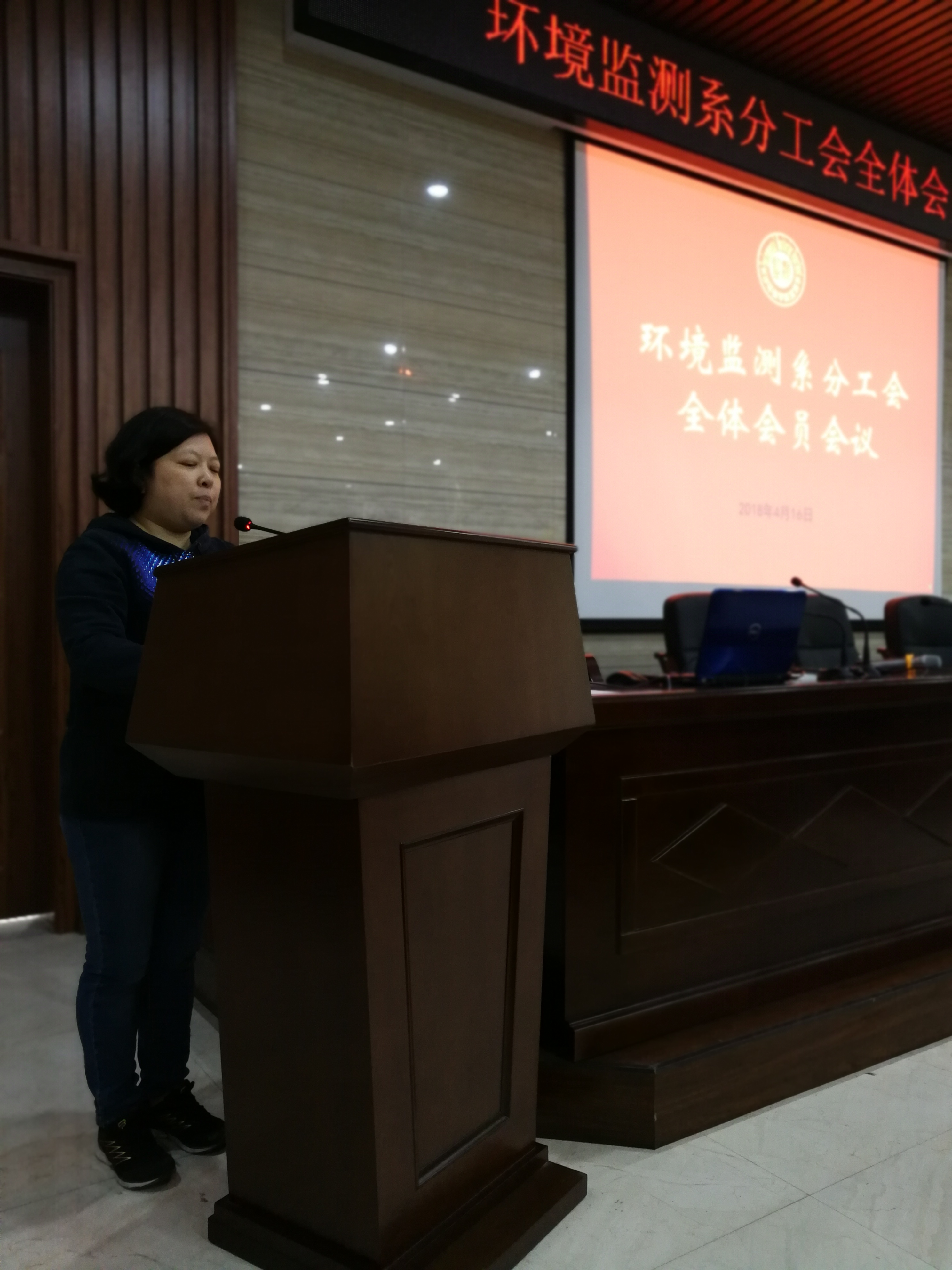 2018年4月16日,环境监测系分工会在监测楼阶梯教室召开分工会全体会员大会,会议听取了上一届分工会的工作报告,选举产生新一届分工会委员。大会由系党总支副书记、系主任姚运先教授主持,共有79名会员参加了会议。